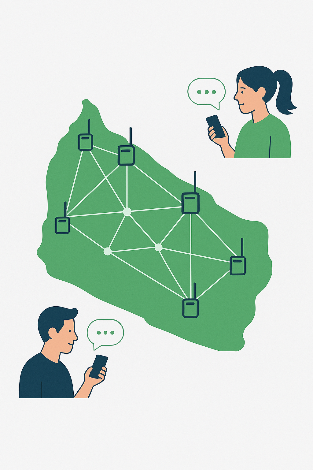 Vi bygger Bornholms eget åbne nød- og fællesskabsnetværk.Meshtastic-netværket kan forbinde os, selv hvis mobilnettet går ned – men også bruges i hverdagen til at sende korte beskeder, koordinere ture og dele info på tværs af øen.